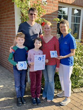 Anke Büll, Vorstandssprecherin des NABU Kisdorfer Wohld, freut sich über so viel Wohlwollen gegenüber den Schwalben und verleiht an Birte und Lisa Harms die Auszeichnung "Schwalbenfreundliches Haus". Eine Plakette weist künftig auf diesen für Schwalben so gastlichen Ort hin. "Leider ist dies keine Selbstverständlichkeit, häufig werden die unter Schutz stehenden Flugakrobaten aus Angst vor Schmutz vertrieben. Aber wir hoZen, dass sich viele Nachahmer finden und wir noch viele Häuser auszeichnen können. Wer Schwalben beherbergt, kann sich dafür einfach beim NABU melden", so Anke Büll.