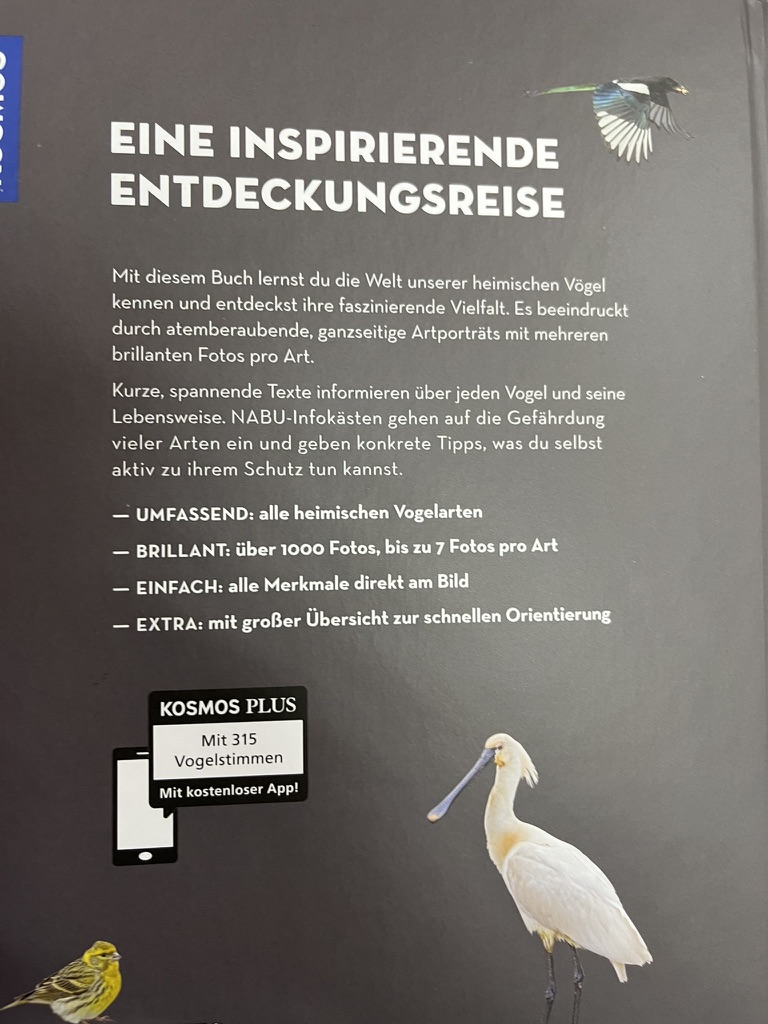 Ein Vogel-Bestimmungsbuch für die ganze Familie. 315 heimische Vogelarten und viel Informationen drumherum. Zu beziehen auch über den NABU-Shop.