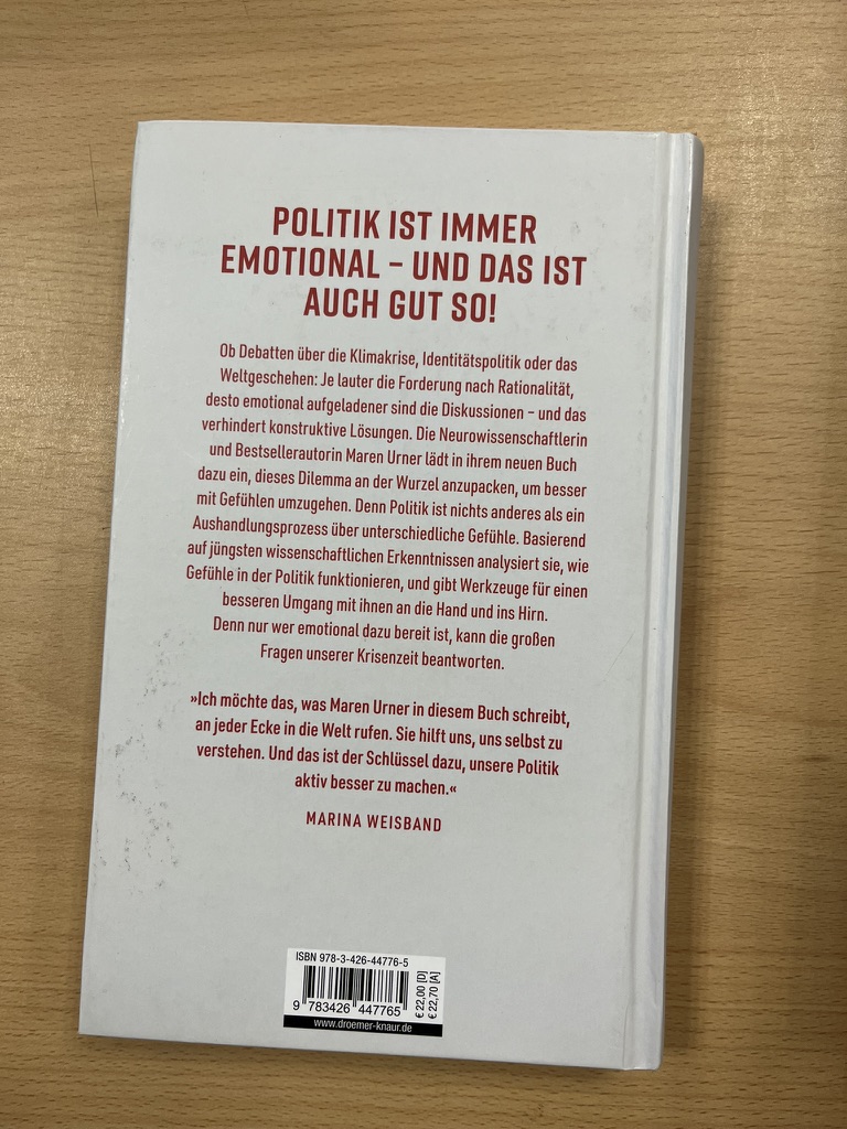 Die Neurowissenschaftlerin Maren Urner zeigt, dass Verstand und Emotionen nicht voneinander zu trennen sind. Interessant für alle, die eine Botschaft - wie z.B. den Naturschutz - an den Mann/Frau bringen wollen...